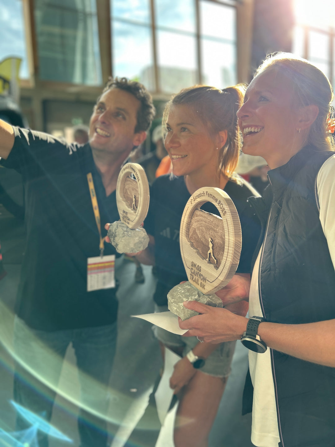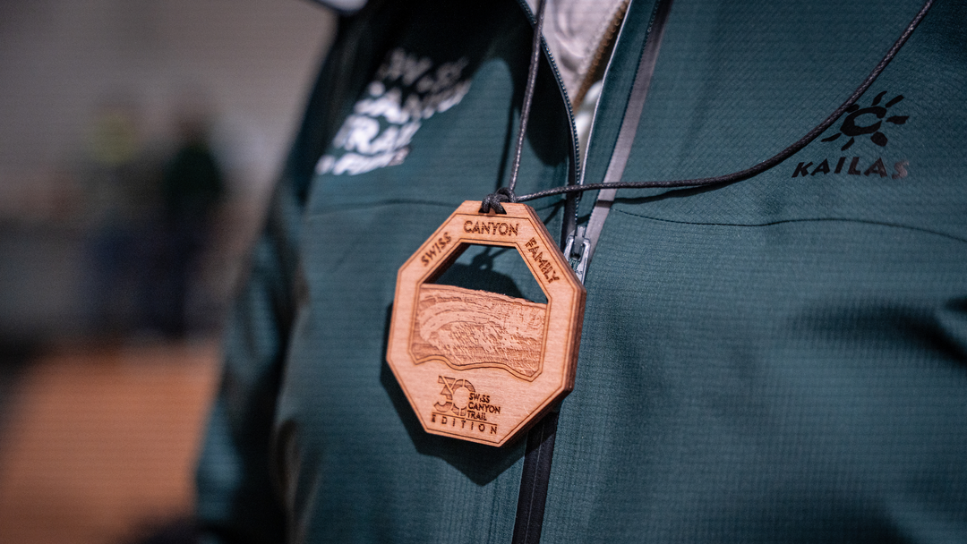 Parce qu’au Swiss Canyon Trail chaque détail compte, nos partenaires offrent aux finishers des produits de qualité, pensés pour prolonger l’expérience au-delà de la ligne d’arrivée. Les médailles et trophées sont quant à eux réalisés à la main par un membre du comité, en bois et en pierre de la région : des pièces uniques, symboles de l’authenticité et de l’esprit du Val-de-Travers.